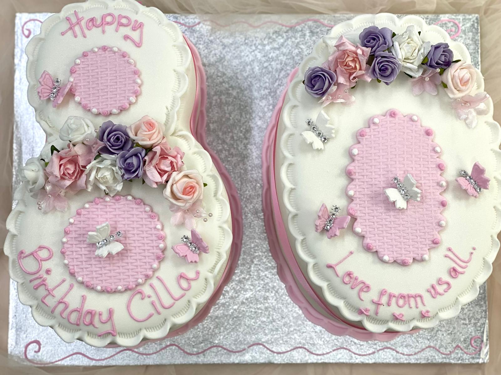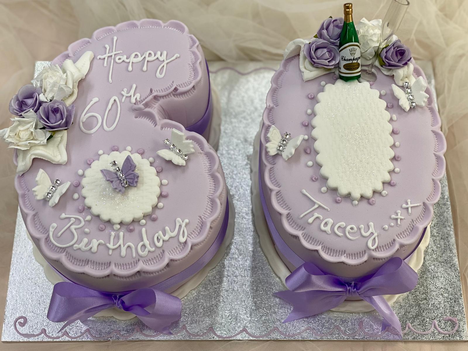 Fondant Iced Double Number Cake in your choice of colours with a personalised message added.